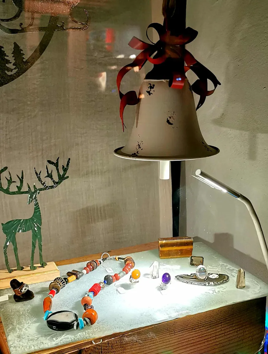 L'artiste crée des bijoux (collier, bague, pendentif, bracelet...) et des sculptures (marbre, grès, stéatite...) sur demande et vous propose également de visiter son atelier de fabrication situé à PHALSBOURG.